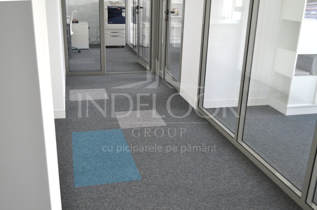 Materiale instalate : mochetă în dale - Quartz de la Balta